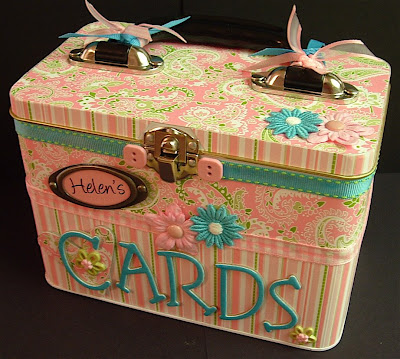 Dang, Girl! Saying prayers and thinking all kinds of good thoughts for you both. This lunch box is ADORABLE! Did you know my name is Helen and I am mother to thousands of dust bunnies?? Ok, but I do love this project! I'm usually not much for altered stuff, but this is so cool. One year I had my cousin Kim make my Mom a bulliten board. It's fabric covered and sits in the track of the kitchen window and is bulging with cards from me! Really hope that you and your Mr. are fine, Tara. {{HUGS}}